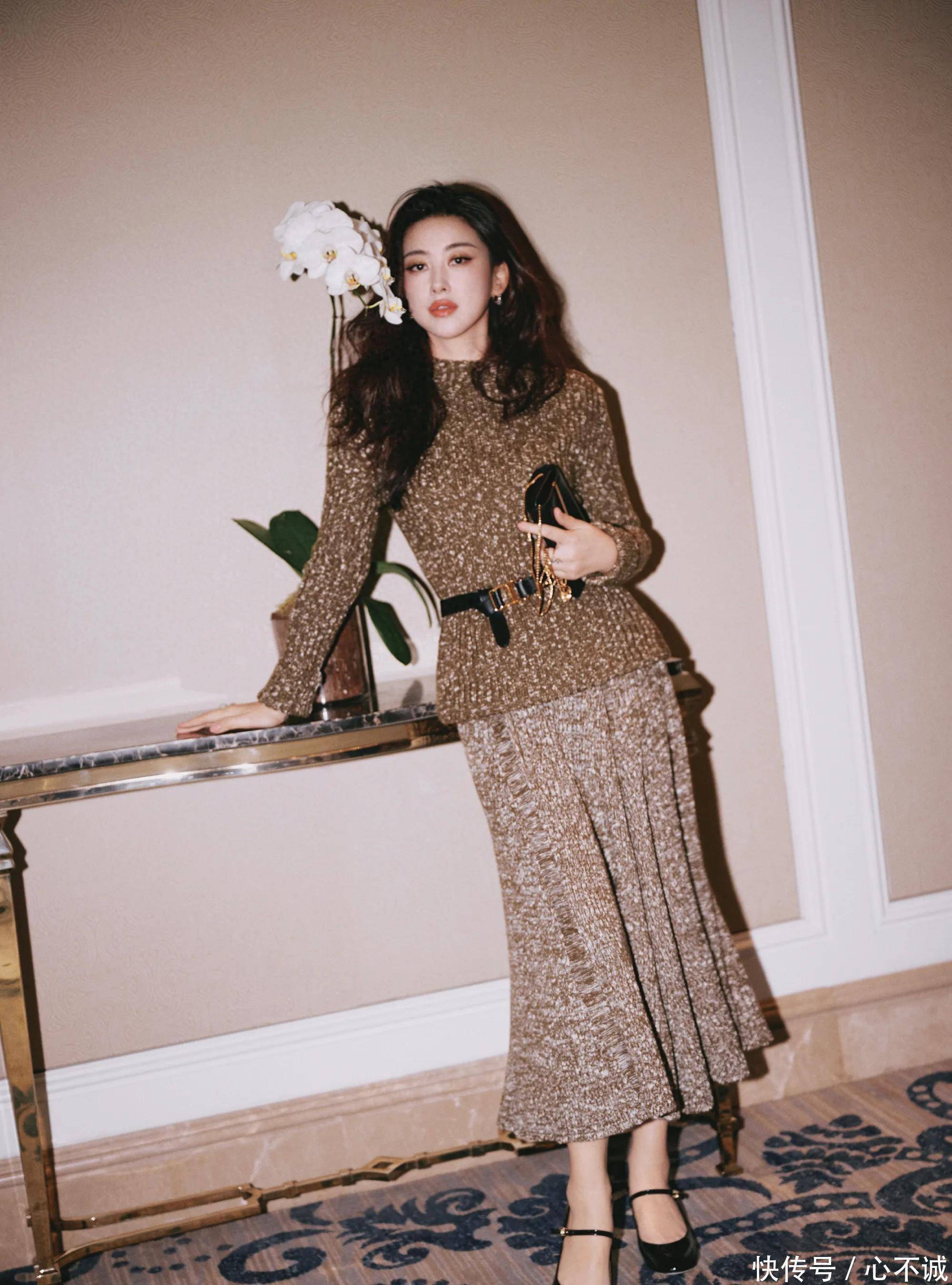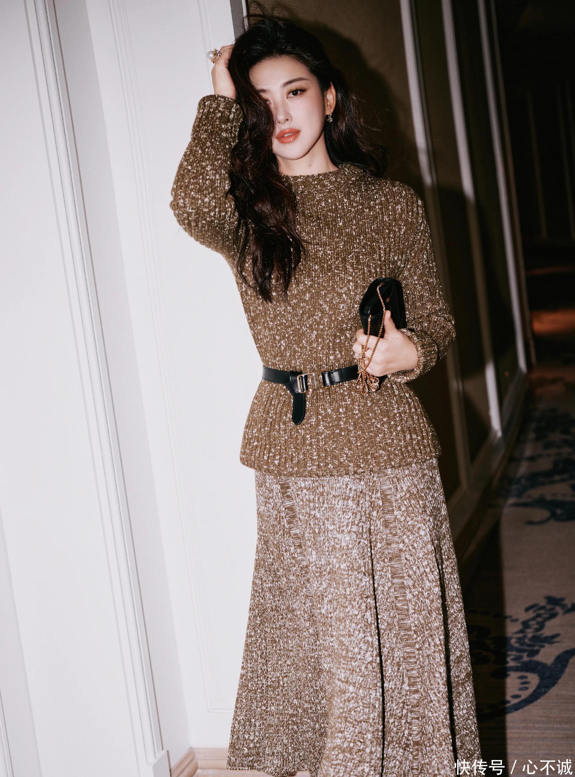 评论区已经炸成一片:“朱珠这是把‘豪门贵气’刻进DNA里了吧?”“这腰这曲线,姐姐到底怎么把针织穿得又欲又贵的?”还有时尚博主扒出这套是某顶奢品牌的秋冬高定款,针织面料要手工混纺一周才能出一件,金棕纹理是专门调的“老钱色系”,难怪穿在她身上像“量身定制”的豪门战衣。